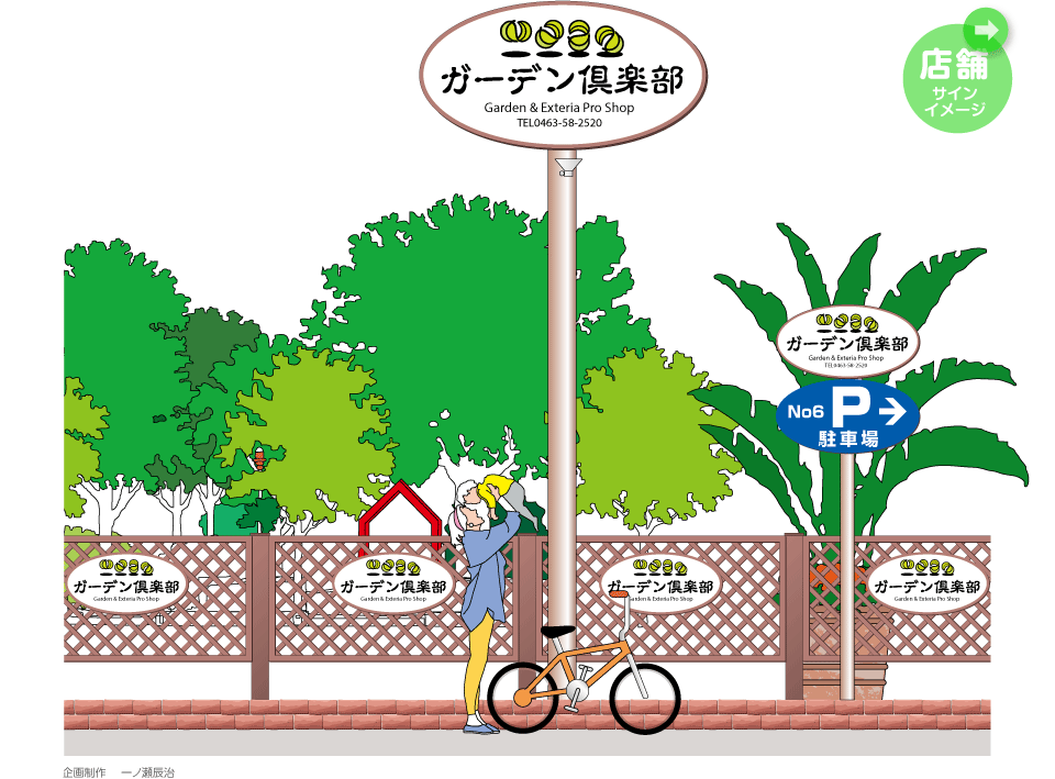 園内、各店舗木看板