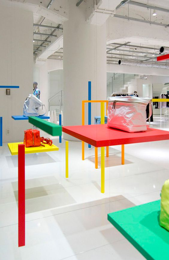 | 彩度を統一して、強烈なイメージで周りの店舗を出し抜きます。原色で勝負します。素人には扱えない色です。配置にマニュアルが必要です。 |